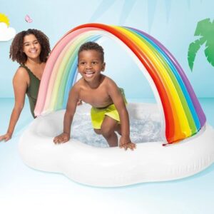 - Dečiji bazen je napravljen u obliku oblaka, a krov na naduvavanje je u obliku duge