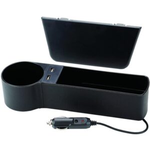 - Multifunkcionalna kutija za odlaganje – Organizer sa dvostrukim USB portovima, držačem za čašu, sitnice i telefon