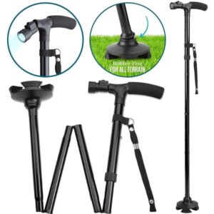 - Sklopivi štap za hodanje sa svetlom ima 6 LED lampica bele boje koje su vrlo praktične i osvjetljavaju vam put dok hodate (rade na baterije: 4 x LR44).