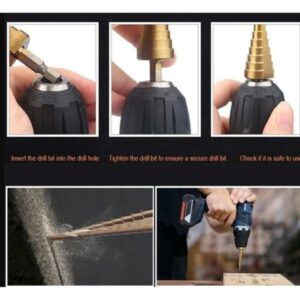 • Set od 5 komada uključuje burgije za bušenje pilot rupa za glave strafova veličine 6, # 8, # 10, # 12 i # 14