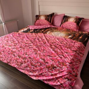 Posteljina 3D SATEN Pink flowers