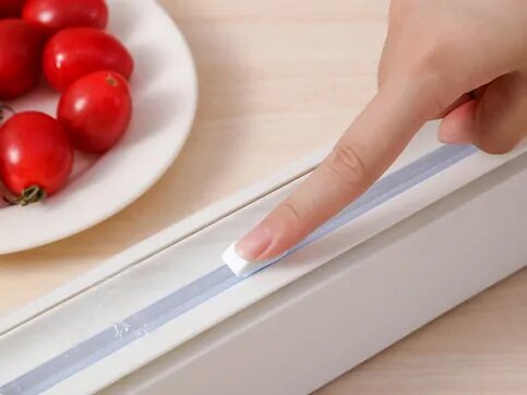 - Dugme za dvosmerni klizni rezač, izvucite količinu omota koju želite, možete je glatko seći s leva na desno ili s desna nalevo bez upotrebe makaza