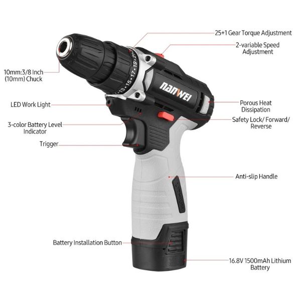 Aku bušilica sa 2 baterije je moćan alat koji će vam olakšati sve vaše radove u kući ili radionici. Ova bušilica je opremljena sa dve visokokapacitetne baterije koje omogućavaju dugotrajno korišćenje bez potrebe za čestim punjenjem.