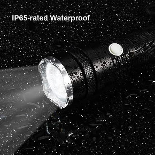 - Vodootporna taktička lampa sa IP65 ocenom omogućava praktičnu upotrebu u raznim ekstremnim vremenskim uslovima