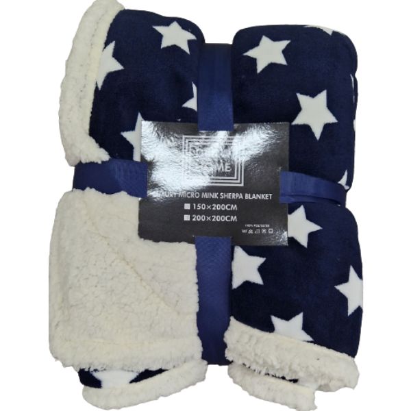 Ćebe sa krznom 200×200 – Plavo sa zvezdicama