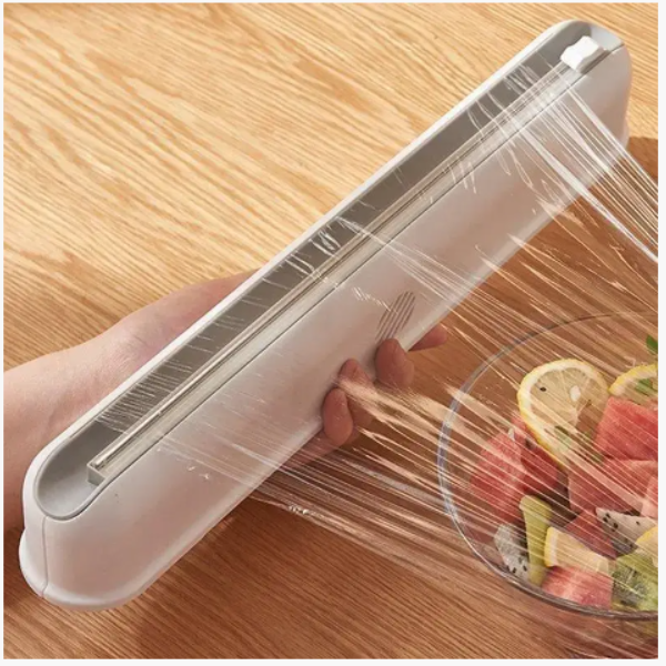 - Dugme za dvosmerni klizni rezač, izvucite količinu omota koju želite, možete je glatko seći s leva na desno ili s desna nalevo bez upotrebe makaza