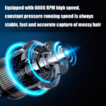 - Opremljen motorom visokog obrtnog momenta od 6000 obrtaja u minuti, ovaj alat za brijanje dlaka u nosu obezbeđuje sečiva sa dve ivice sa snagom koja je potrebna za čiste i efikasne rezove