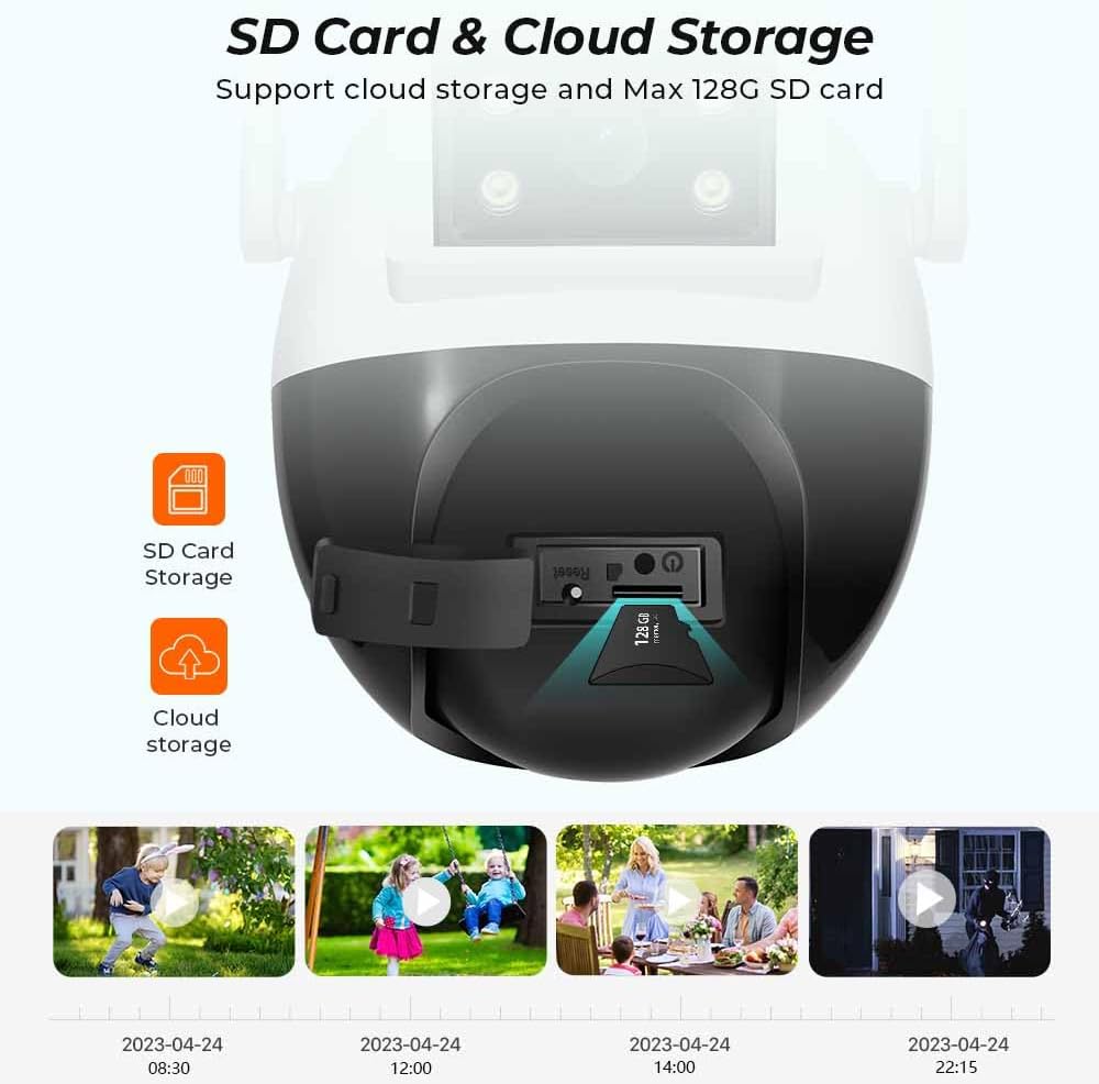 Ova napredna PTZ bežična kamera je savršen izbor za spoljni nadzor vašeg doma ili imanja. Sa horizontalnom rotacijom od 355° i vertikalnom rotacijom od 90°, omogućava potpunu pokrivenost prostora. Korišćenje dva sočiva omogućava bolji pregled, sa PTZ kamerom za praćenje kretanja i statičkom kamerom koja obezbeđuje 10k optički zum. Pored toga, kamera koristi integrisane IR LED diode za noćni vid, kao i reflektorska svetla koja se automatski aktiviraju kada se detektuje pokret.