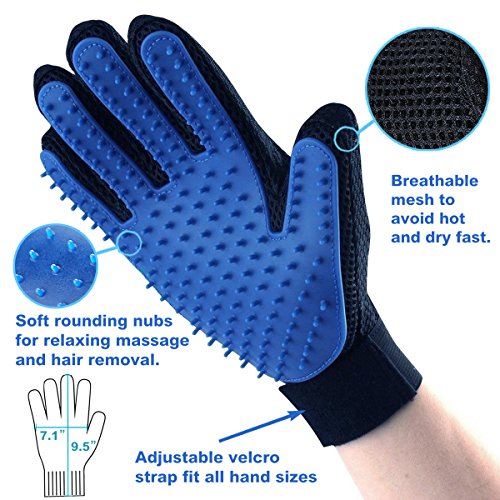 - Pet prstiju, podesiva širina, silikonska površina sa mnoštvom nežnih čekinja brzo, nežno i efikasno uklanjaju sav višak dlaka sa ljubimca.