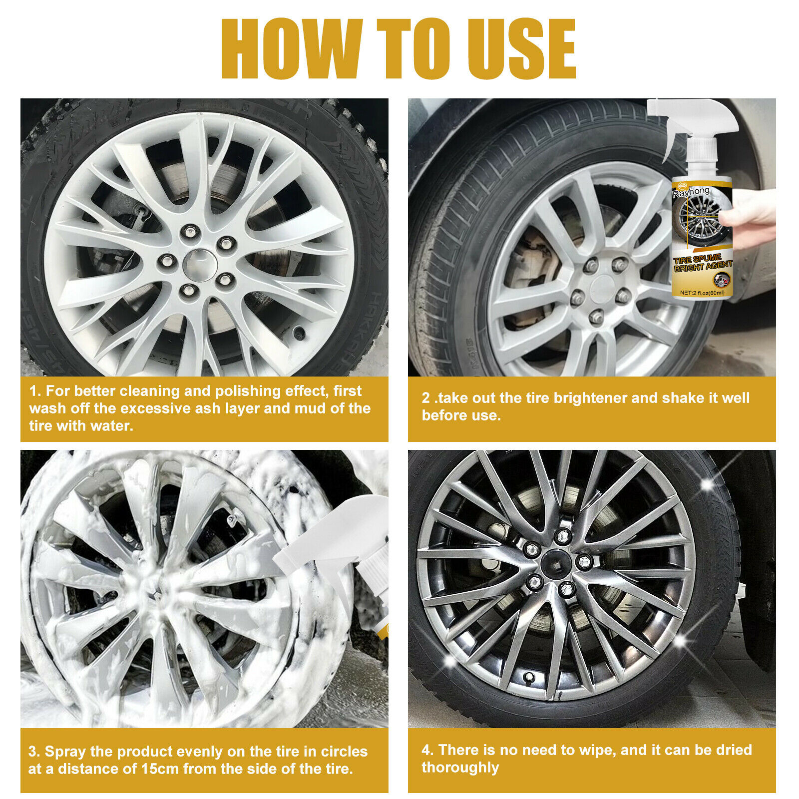 - Praktično za upotrebu: Ovaj proizvod može efikasno očistiti prljavštinu na površini gume, efikasno održavati gumu čistom, odložiti pucanje i starenje gume.
