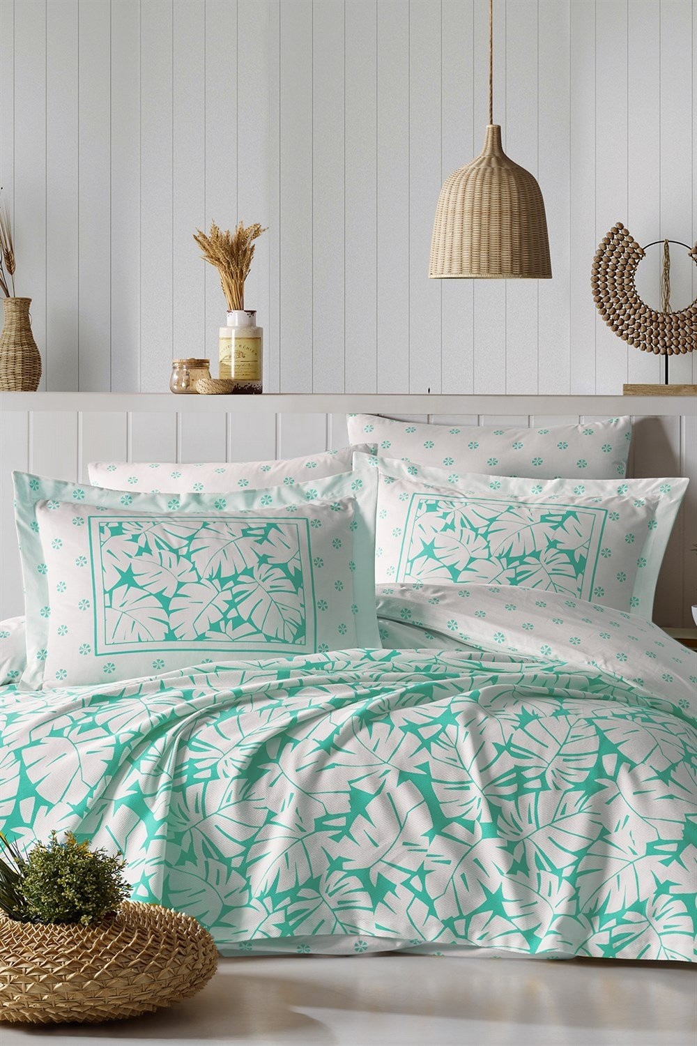 Predstavljamo našu novu kolekciju Prekrivač + Set posteljine Palma,a kada je reč o posteljini, mekoća i udobnost su na prvom mestu.Posteljina osmišljena trajno da poboljša ne samo izgled Vaše spavaće sobe, nego i Vaš san.Izradjena od 100% pamuka,prirodnog materijala.