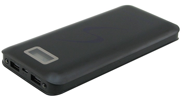 Powerbank UKC 30000 mAh napravljen je od ABS plastike i ima LCD ekran koji prikazuje napunjenost baterije u procentima i informacije o priloženim USB priključcima.