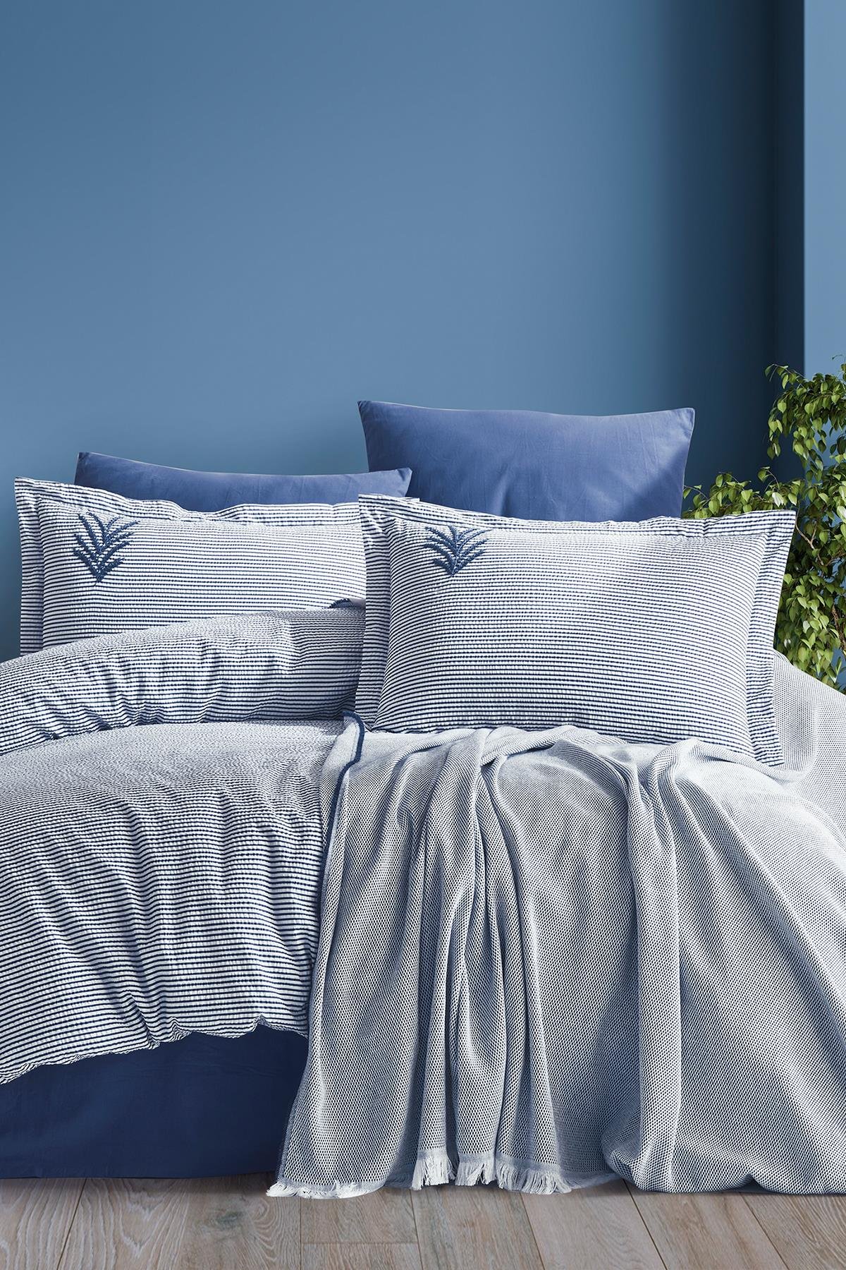 Prekrivač + Set posteljine Palma plava boja