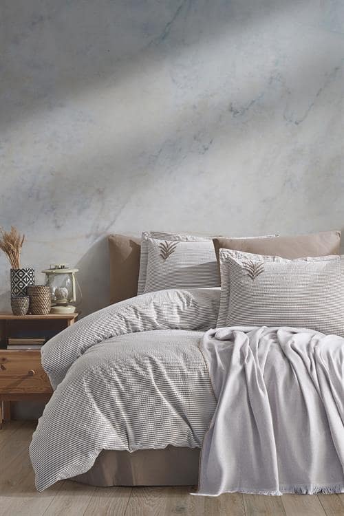 Be the first to review “Prekrivač + Set posteljine Palma siva boja”