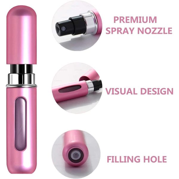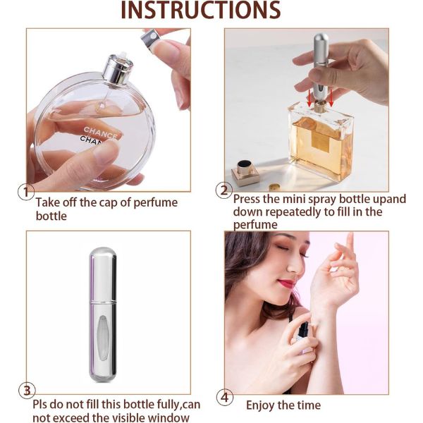 - Ovaj set raspršivača parfema je bezbedan u avionu i neće procuriti u vašu tašnu ili kofer. Neophodan je za putovanja i za muškarce i za žene, savršen za čuvanje vašeg parfema na putovanju. Daje vam svež parfem kada ste u pokretu ceo dan.