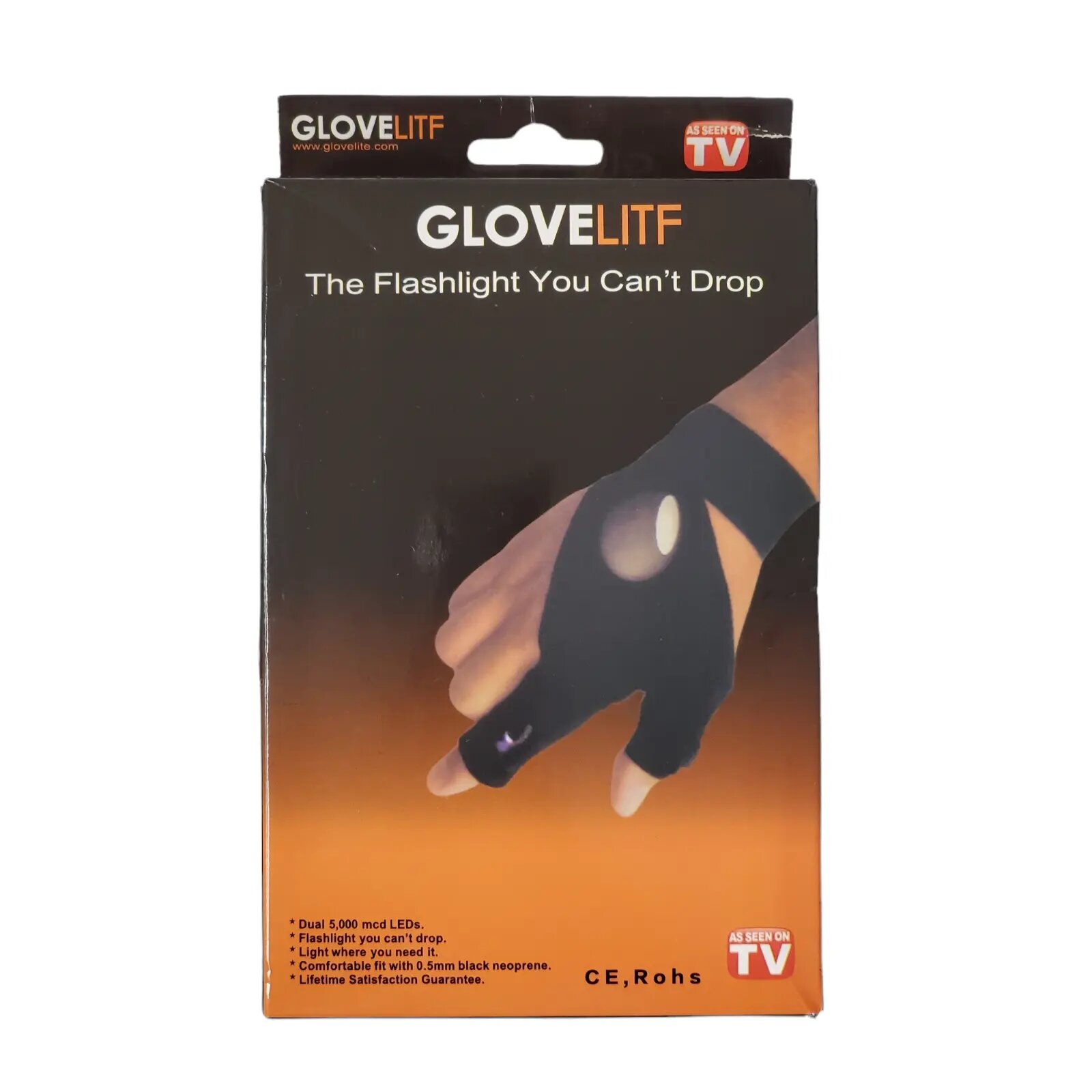 - Sadrži dve jake LED lampice (5000mcd): na kažiprstu i palcu