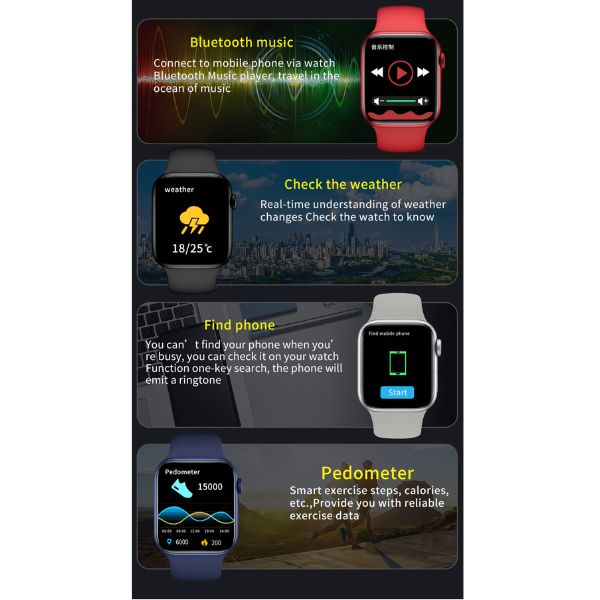 - Podržava pun ekran osetljiv na dodir od 1,75 inča, Bluetooth poziv, otkucaje srca, krvni pritisak, kiseonik u krvi, multi-sportske režime, zamenu kaiša od 44 mm, bluetooth muziku, može da vidi carinska lica, vreme, podeljeni ekran, dugme za rotiranje, 3 IU.