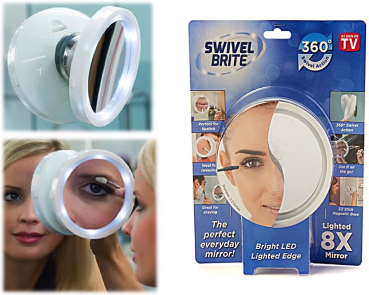 Swivel brite ogledalo je ono što Vam je potrebno. Ono se rotira, lako podešava, prenosi, uveličava čak 8 PUTA i ima svoje LED svetlo! Uz pomoć magneta se može pričvrstiti na svaku glatku i ravnu površinu, a to će Vam omogućiti da brzo, lako i precizno nanesete šminku, izvšite neke druge korekcije na licu ili da se, ako ste muškarac, lakše obrijete.