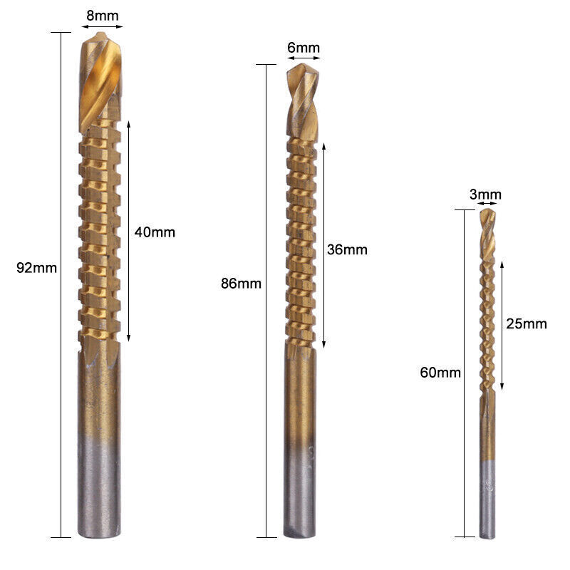 - Set sadrži tri burgije sa prostorom za odvod izbušenog materijala i tri burgije za tvrđi materijal